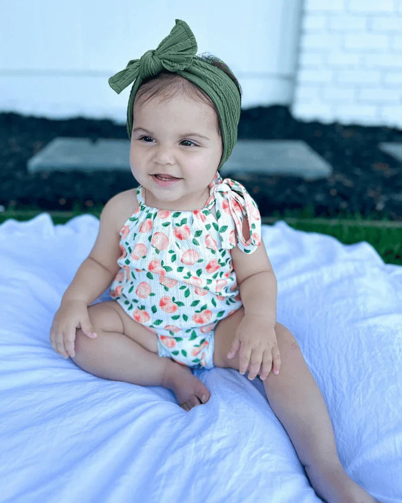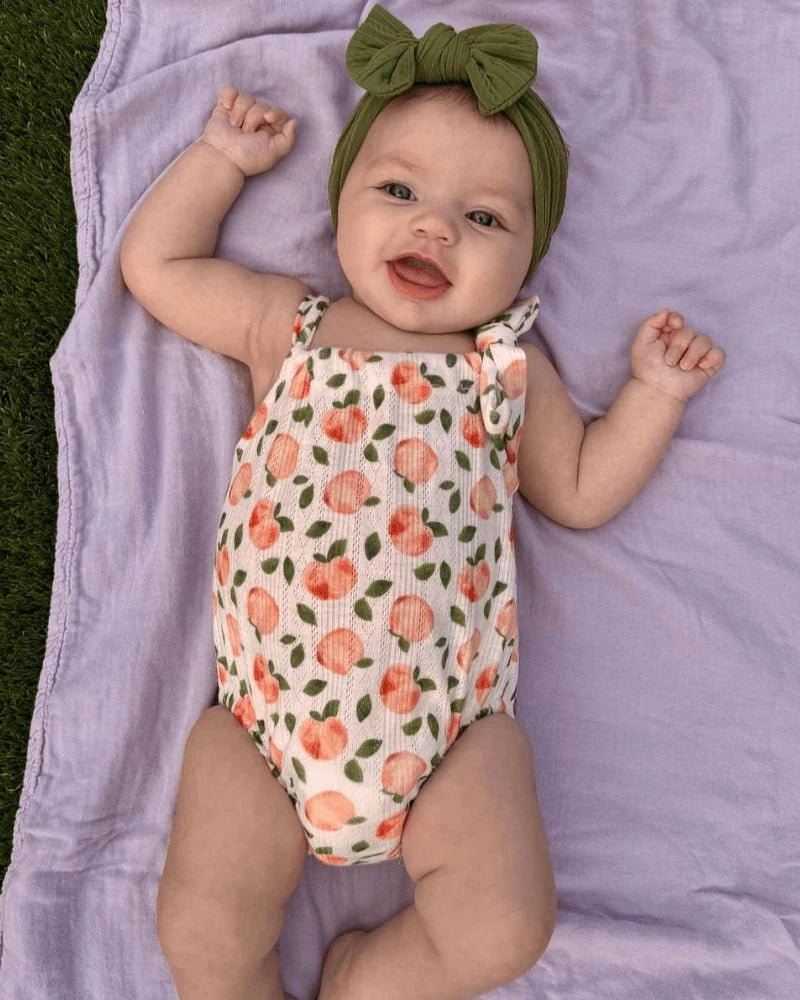 Add a pop of peachy sweetness to your little one’s wardrobe! This soft, breathable bubble romper features a comfy fit, snap closures for easy changes, and a charming peach hue perfect for any occasion.
