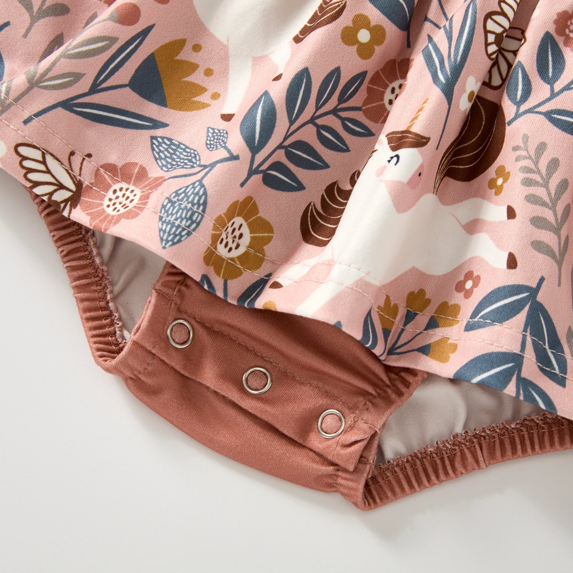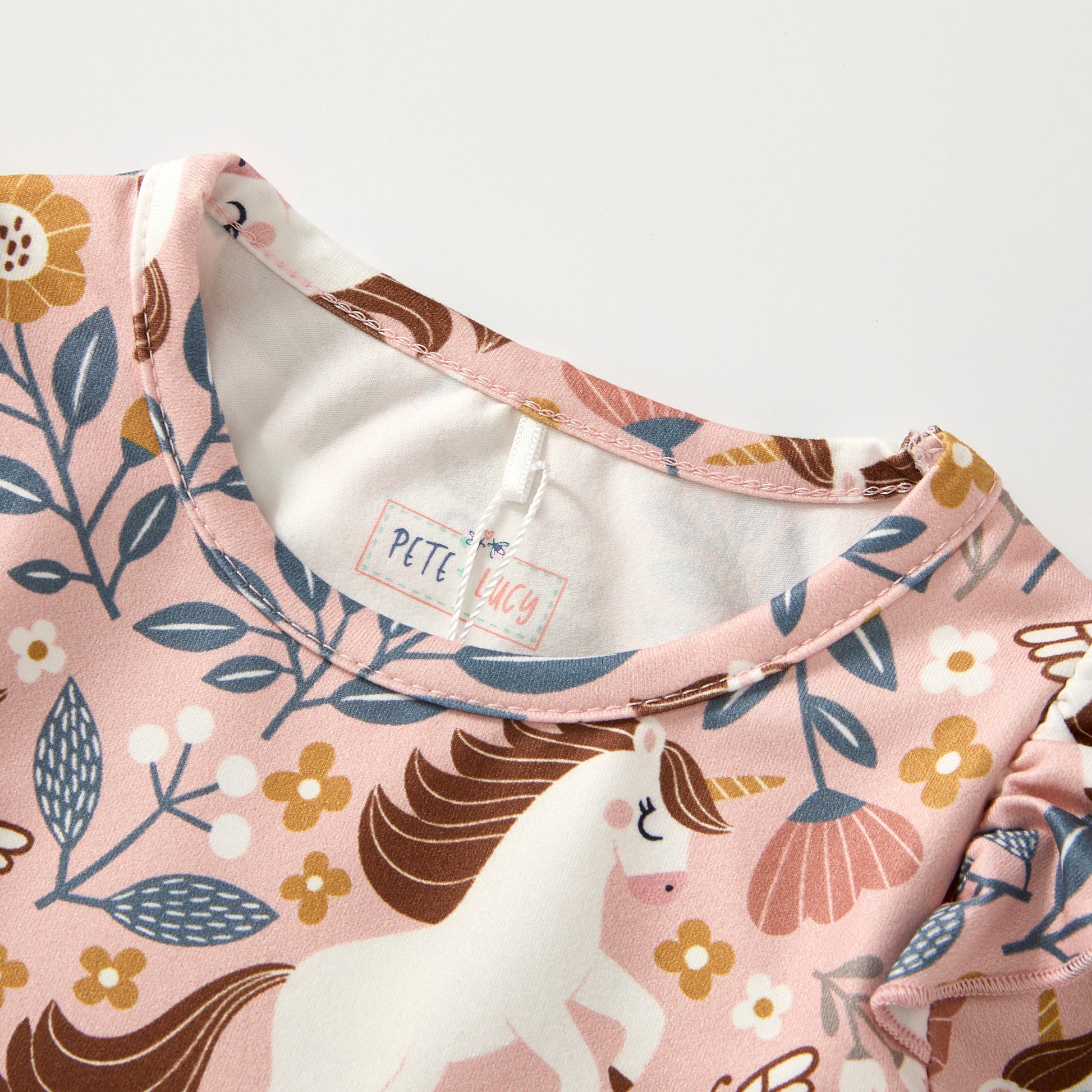 Let her wander into a world of gentle enchantment. Our Meadow Magic Romper features Pete + Lucy’s signature buttery-soft P+Lush fabric, sprinkled with whimsical unicorns, fluttering butterflies, and dreamy florals in warm meadow tones. Designed with long sleeves, a peplum skirt, and ruffle accents, this romper blends everyday comfort with storybook charm.